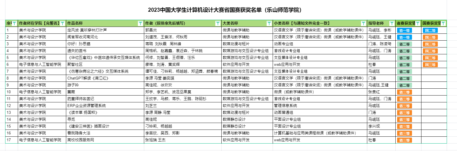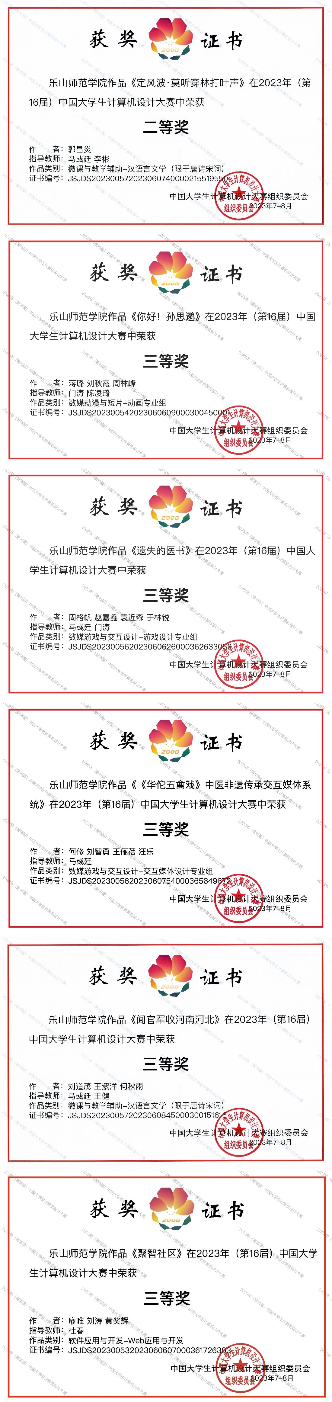 本网讯(文、图/马彧廷)我校美术与设计学院、电子信息与人工智能学院在2023年中国大学生计算机设计大赛中取得优异成绩,共斩获国赛二等奖1项、三等奖5项,及省赛一等奖2项、二等奖7项、三等奖8项。