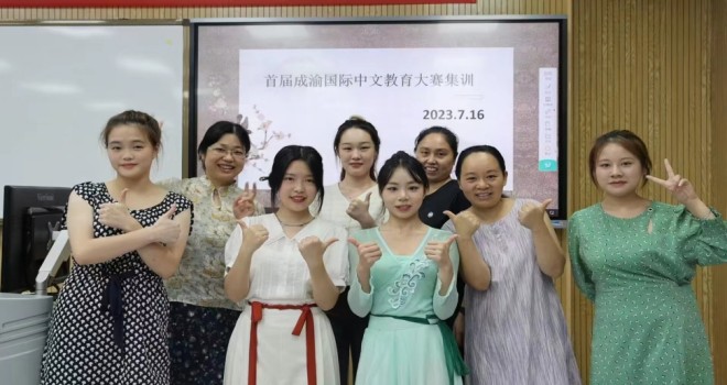 本网讯(文、图/赵雅丽)近日,在由重庆市教育委员会和四川省教育厅联合举办的“首届成渝地区双经济圈国际中文教育大赛”中,我院汉语国际教育专业2020级刘鑫、2021级赵雅丽、叶方杨同学,在聂小丽、陈熹、代瑛三位老师悉心指导下,凭借扎实的教学功底和出色的中华才艺,成功晋级总决赛并进入最后一、二等奖项的角逐。