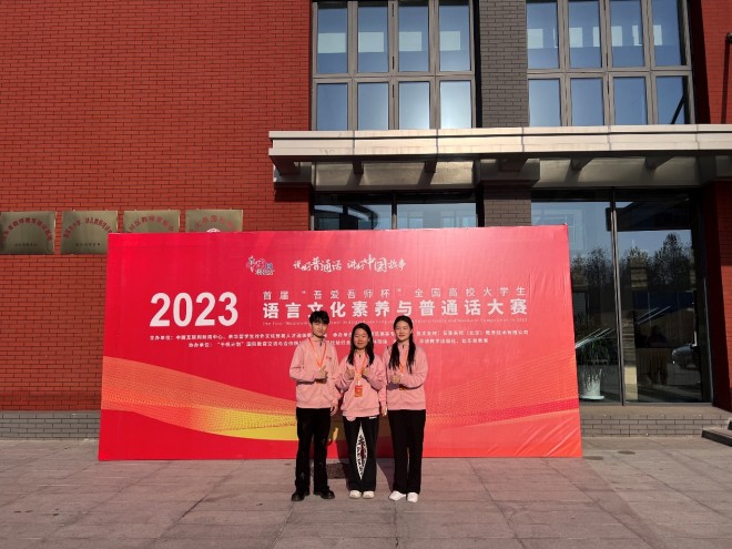 由我校文学与新闻学院播音与主持艺术专业2021级学生张勋、袁艺杰和2022级学生屈小婷组成的参赛队伍,在专业教师穆雪良老师的带领下,奔赴山东淄博,与来自全世界及全国20多个省(自治区、直辖市)的48个参赛队、144名选手齐聚一堂,共赴此次文化盛会,同台角逐。
