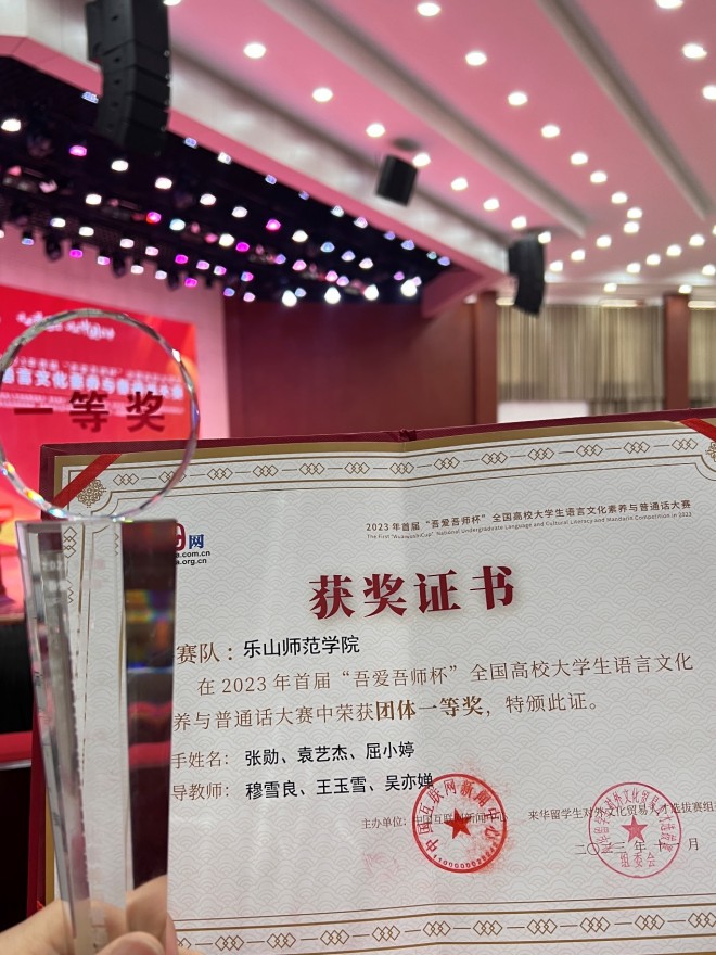 在备赛过程中,穆雪良老师悉心指导,统筹安排,为同学们设置了明确的比赛目标,提供了高效的比赛方法。三位同学刻苦练习,认真准备,以积极昂扬的态度对待此次国家级的重大比赛。在比赛过程中,三位同学沉着冷静,应对自如,在与各高校高水平学子的同台竞技中,发挥自己的优势,弥补自己的缺陷。真正做到了“以赛促学”,全面的展现了乐师学子的专业实力和良好风貌,赢得了参赛选手及评委考官的一致认可。最终以本科组总分第一名的成绩,勇夺全国一等奖。