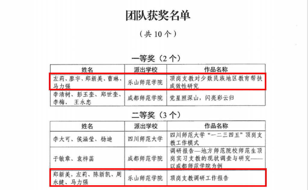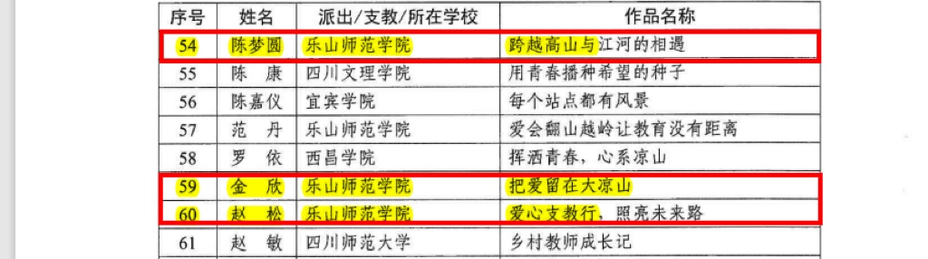 本网讯(文、图/郑新美)近日,由四川省教育厅、四川省关心下一代工作委员会共同举办的“爱在大凉山”师范生顶岗实习凉山支教活动征文比赛结果公布。数理学院师生踊跃参与,喜获佳绩,分布荣获团队一等奖1项、二等奖1项,个人三等奖1项、优秀奖7项。