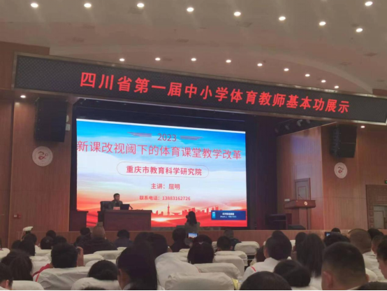 本网讯(文、图/孟亚兰)2023年11月27日—28日,体育学院受邀参加由四川省教育科学研究院主办,四川省南充高级中学承办的四川省第一届中小学体育教师基本功展示大赛。本次活动由体育学院副院长张爱平带队,学院党委副书记王美、专业负责人鲁长春、武术专任教师杨文铭、足球专任教师郑亚男、田径专任教师孟亚兰参加。受邀参加本次活动的有省内体育专业类师范院校20余所,参加比赛的运动员由17个地市400余名体育教师组成。