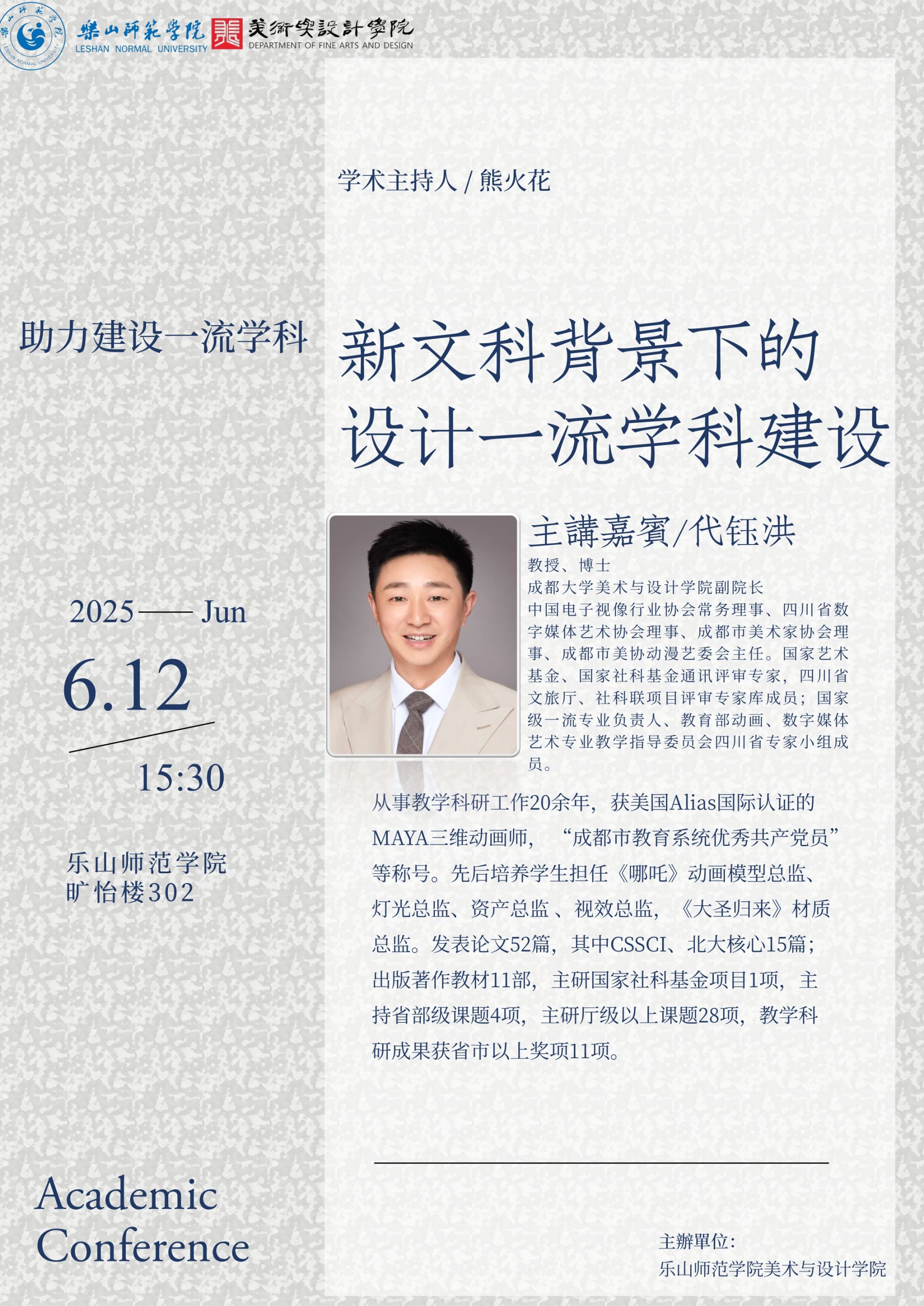 讲座题目:新文科背景下的设计一流学科建设